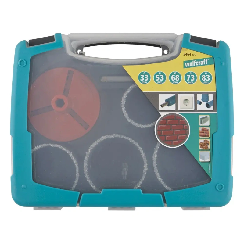 7-osaline kõvasulamikattega augufreeside komplekt plastkarbis. Installatsioonitöödeks (pistikud, torud jm), sobib telliskivi, ehitusplokkide, kipsplaadi ja keraamiliste plaatide lõikamiseks.