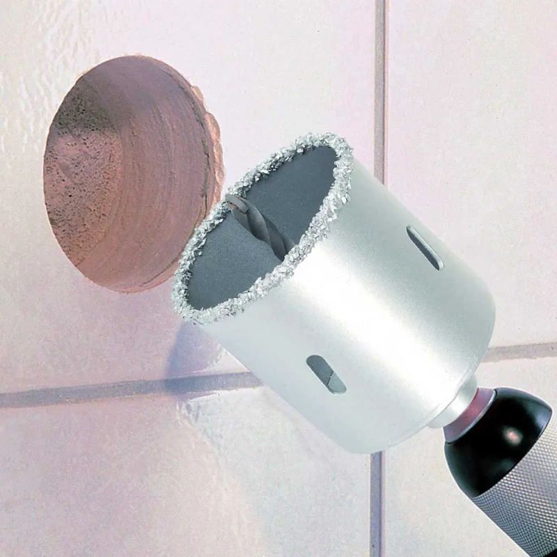 3 volframkarbiidkattega augusaagi (Ø 33, 53 ja 68 mm, lõikesügavus 55 mm) täpsete aukude puurimiseks vee- ja elektripaigaldiste jaoks tellisseintes ja kivis