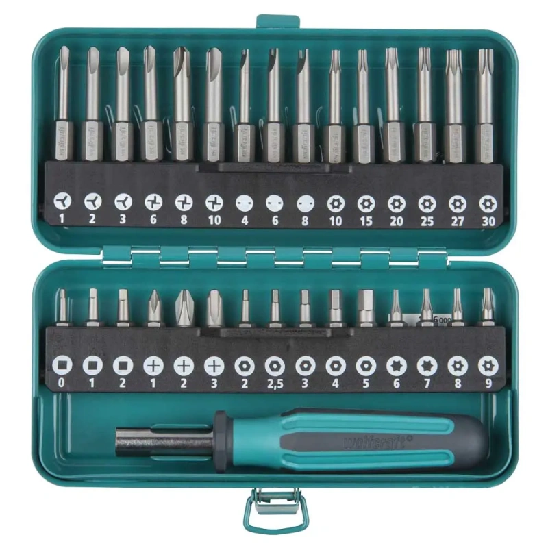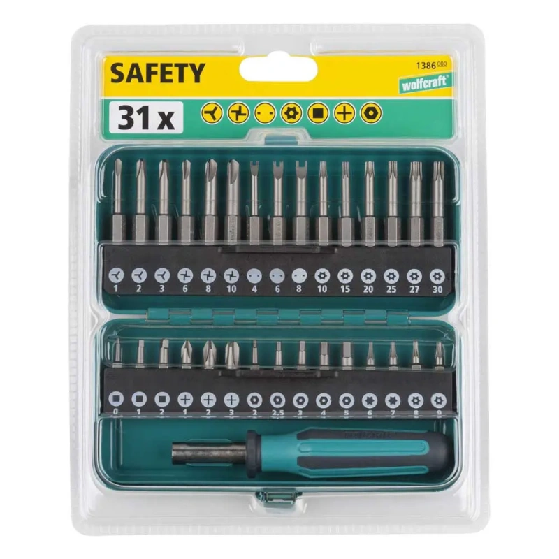 31-osaline kruvikeeraja eriotsikute komplekt metallkarbis. Kaasas kiirlukustusega otsikuhoidja. eriotsikud on levinud elektrooniliste seadeldiste jms kinnitamisel, kaitsmaks nende avamist tavaliste kruvikeerajatega (lame või ristpea). Sobib elektroonikahuvilistele meisterdajatele.