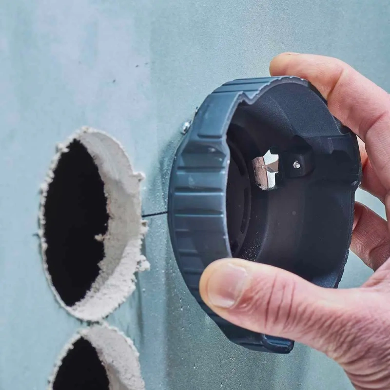 Kipsplaadi faasilõikur on ideaalne käsitööriist Ø 68 mm puuraukude servade faasimiseks. Faasimisnurk on sobiv tavapäraste õõnesseinakarpide paigaldamiseks tasapinnaliselt. Tänu ergonoomilisele geomeetriale saab faasimistööd kiiresti ja edukalt lõpule viia. Kolm teravat tera tagavad puhtad lõikeservad ning vajadusel saab need asendada eraldi saadaval olevate asendusteradega (artikli nr 5893000). Tänu vastupidavale plastikdisainile on see asendamatu ja usaldusväärne abimees puhaste lüliti- ja pistikupesade paigaldamisel kipsplaati.