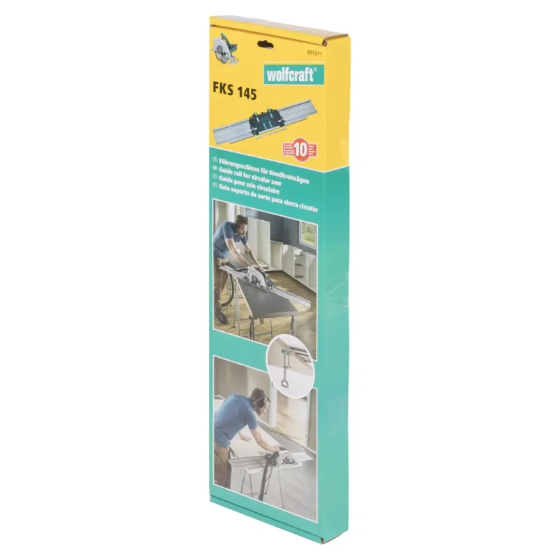Kaheosaline juhtsiin FKS 145 sobib mitte ainult voolutoitega käsiketassaagidele, vaid ka akutoitega käsiketassaagidele, millel on väike tald. Juhtsiini saab kasutada tavaliste käsiketassaagidega, mille lõikesügavus on 40–70 mm, saetera läbimõõt 130–200 mm ja tald mõõtmetega vahemikus 78 x 210 mm kuni 256 x 385 mm. Kaks vahtkummist riba alumiiniumsiini alumisel küljel tagavad mittelibiseva kontakti töödetailiga, samas kui kaks kaasasolevat kaitsekorkidega klambrit kindlustavad, et siin kinnitub kindlalt pinnale ilma kahjustusteta. Seda saab kasutada sirgete ja pikkade lõigete tegemiseks, samuti nurklõigete jaoks pikematel detailidel, isegi servast kaugemal olevates piirkondades. Kummiriba vähendab libisemise riski ja tähistab samal ajal lõikekohta. Siinis olevad sälgud avavad ja sulgevad käsiketassae kaitsekatte automaatselt, kui saag liikudes neist üle liigub. Saate reguleerida kelku täpselt siinile kolme reguleerimiskruviga. Käsiketassae kelgule joondamine on samuti kiire ja lihtne. Kelgu integreeritud joondamisabi aitab teil määrata õige vahemaa saetera ja juhtrööpa vahel, ilma vajaduseta mõõdulindi järele. FKS 145 saab keskelt lahti võtta ja kindlalt ühendada kahe ühendusega. Kaks sektsiooni koos võimaldavad lõikepikkust kuni 110 cm – üks sektsioon on piisav lõikepikkuseks kuni 55 cm. Kui soovite töötada eriti pikkade detailidega, saate juhtrööpa pikendada lõikepikkuseni kuni 220 cm, kasutades valikuliselt saadavat pikenduskomplekti (art. nr 6914000) – ideaalne käsiketassae lisatarvik uste ja köögitööpindade lõikamiseks ja lühendamiseks ning kõigi tööde jaoks, kus on vaja juhendamist ja ohutust.