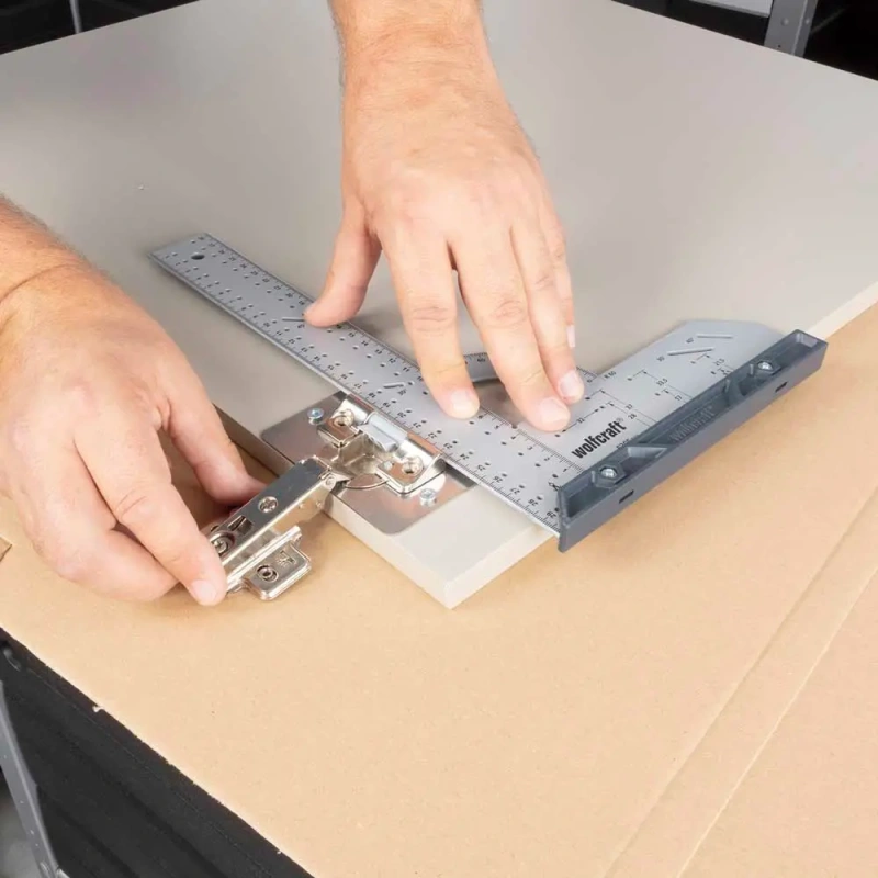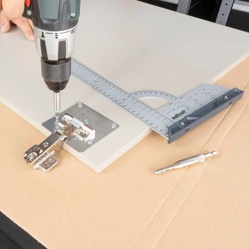 Asetage hinge tassi kujuline osa kinnitusplaadile ja pange see ukse välja rebenenud auku. Kasutage tsentreerivat puuri, et puurida eelaugud kinnitusplaadil olevatesse viide kruviauku. Tööriist võimaldab täpset ja juhitud puurimist sobivale sügavusele. Seejärel kinnitage kinnitusplaat täpselt soovitud kohale. Kui plaat on kinnitatud, valmistuge hinge kinnitamiseks. Pange tsentreeriv puur hinge kruvide aukudesse ja tehke eelaugud. Lõpuks kinnitage kruvid ja hinge töötab jälle korralikult.