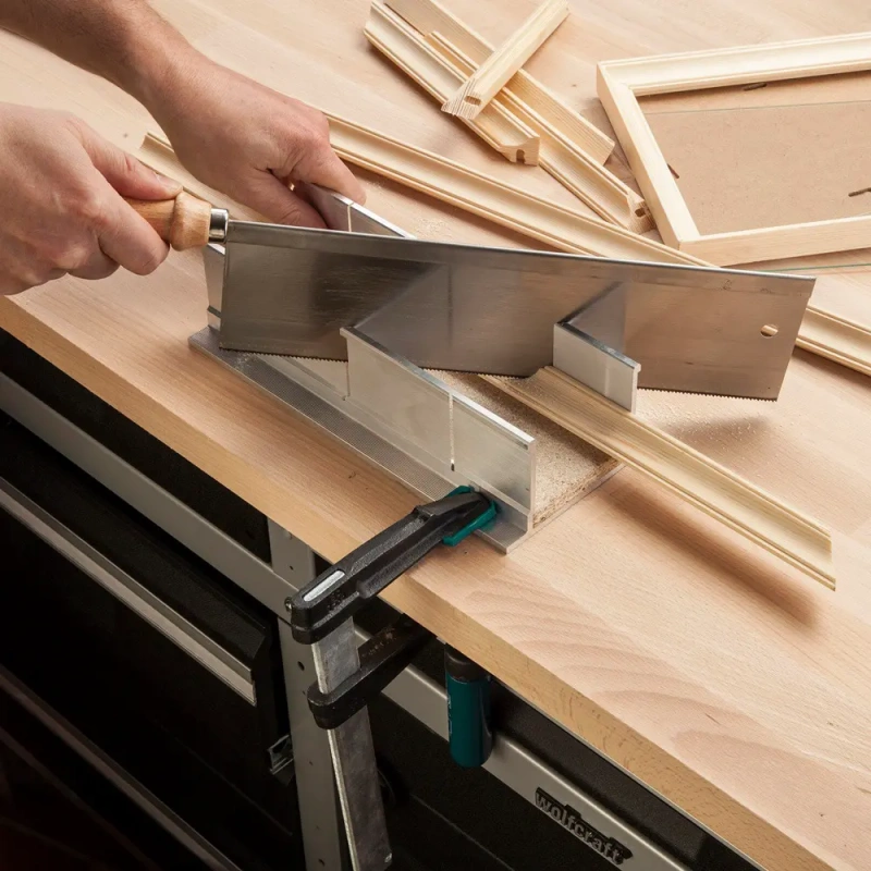 Selle käsisaega saab hõlpsasti saagida puitu, puitlaastplaati, plastkattega puitlaastplaati ja kuni 72 mm paksuseid soklilaudu. Juhtige sirgete ja lihvitud teravate hammastega HCS-tera ergonoomilise puidust käepideme abil. Tera tagab 1,2 mm lõikelaiuse ja seda saab optimaalselt kasutada nurgasaekastis. Tugev ja praktiline tööriist puidutöödeks ja kodutööde tegemiseks ning sokli- ja dekoratiivsete liistude paigaldamiseks.