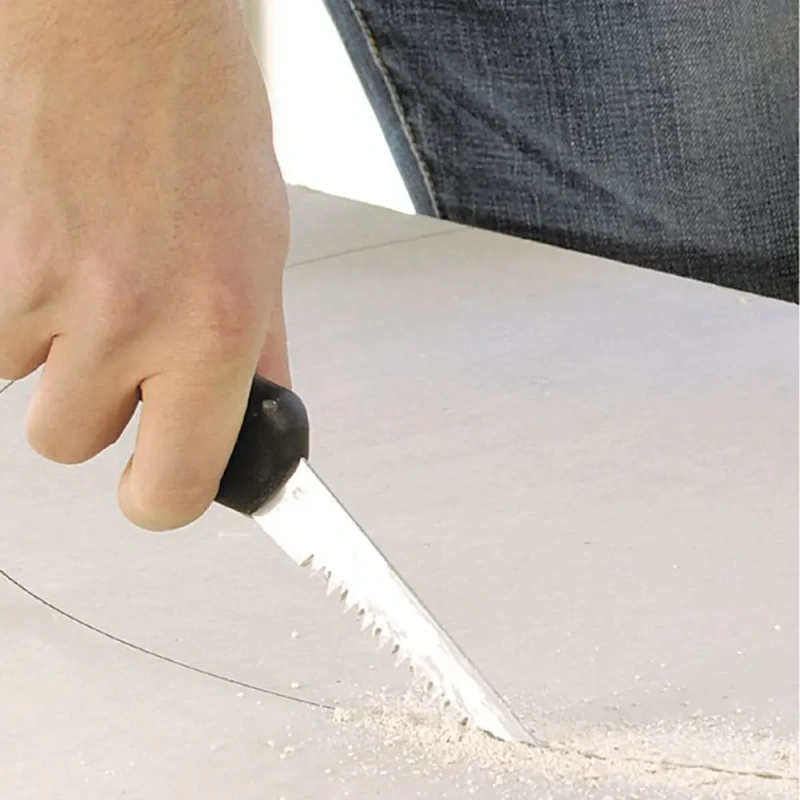 See väike käsisaag on suure täpsusega ja mugav tööriist väikeste väljalõigete tegemiseks kipsplaatidesse. Spetsiaalselt lihvitud tera ots võimaldab teil alustada kontrollitud lõikamist ja saavutada täpne sisselõige. Karastatud lõikehambad tagavad vaevata ja kiire lõikamise. Pehmendusega kahekomponentne käepide sobib mugavalt kätte ning pakub mugavat kasutamiskogemust. Antud saag on vastupidav kvaliteettoode, mis tuleb kasuks erinevate kipsplaadi paigalduse projektide puhul.