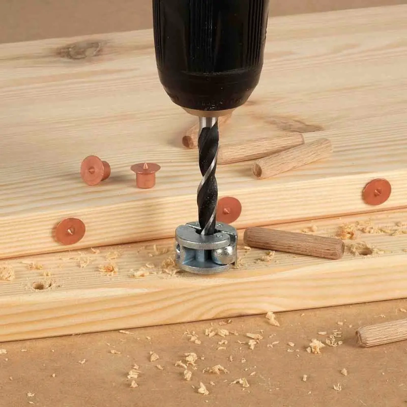 6, 8 ja 10mm puittüüblitele, materjali paksusele 12...30mm. Sisaldab: 2-osaline tüübeldusabinõu, puidupuur 8mm, sügavuspiiraja 8mm, 8mm tüübleid - 40 tk.Lihtne pingutamine, puurimine, tüübeldamine.