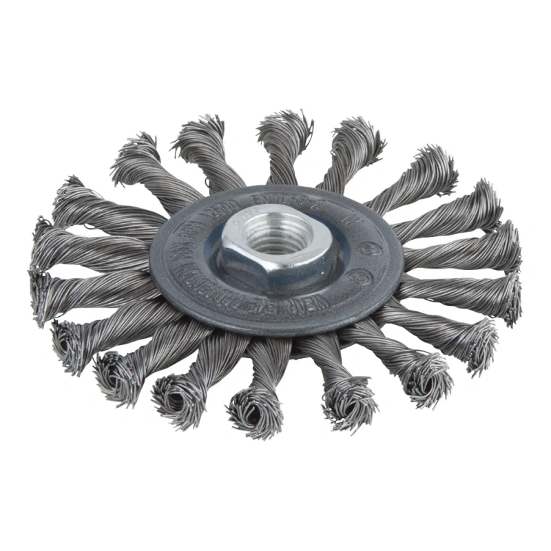 Roostevabast terasest koonushari drellile, suurusega 75mm x 1/4" sabaga, harjaste pikkus 20mm, r/v, sobib rooste eemaldamiseks ja puhastamiseks, keevitustööde eelseks puhastamiseks