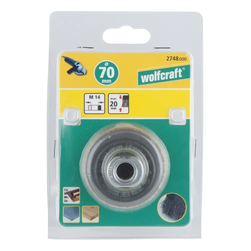 Messingust koonushari, 70mm x M14. Gofreeritud. Sobib mittevärviliste metallide lihvimiseks ja poleerimiseks.