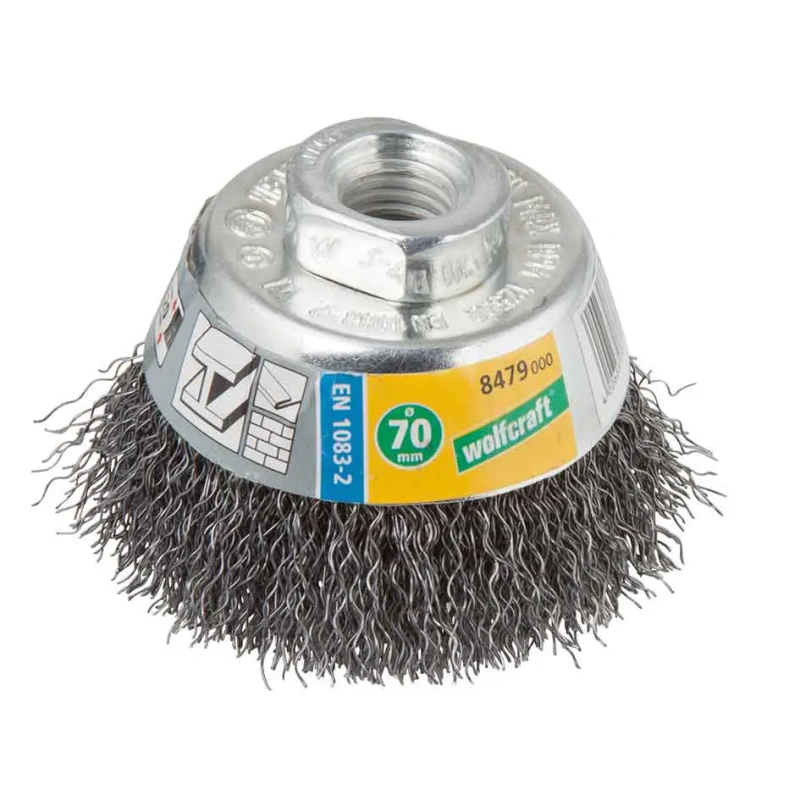 Roostevabast terasest koonushari drellile, suurusega 75mm x 1/4" sabaga, harjaste pikkus 20mm, r/v, sobib rooste eemaldamiseks ja puhastamiseks, keevitustööde eelseks puhastamiseks