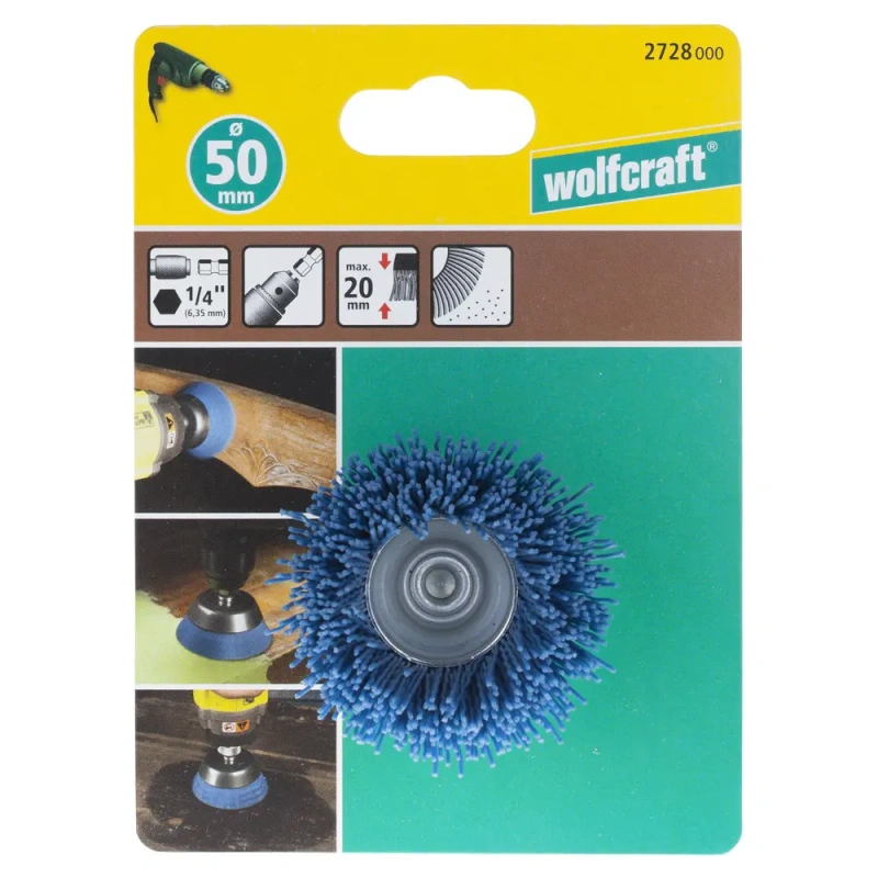Roostevabast terasest koonushari drellile, suurusega 75mm x 1/4" sabaga, harjaste pikkus 20mm, r/v, sobib rooste eemaldamiseks ja puhastamiseks, keevitustööde eelseks puhastamiseks