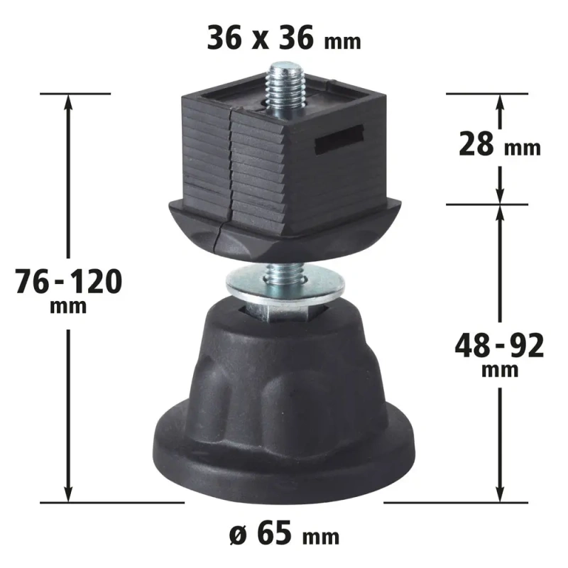 - kõrguse reguleerimine kuni 40 mm põranda ebatasasuste kompenseerimiseks