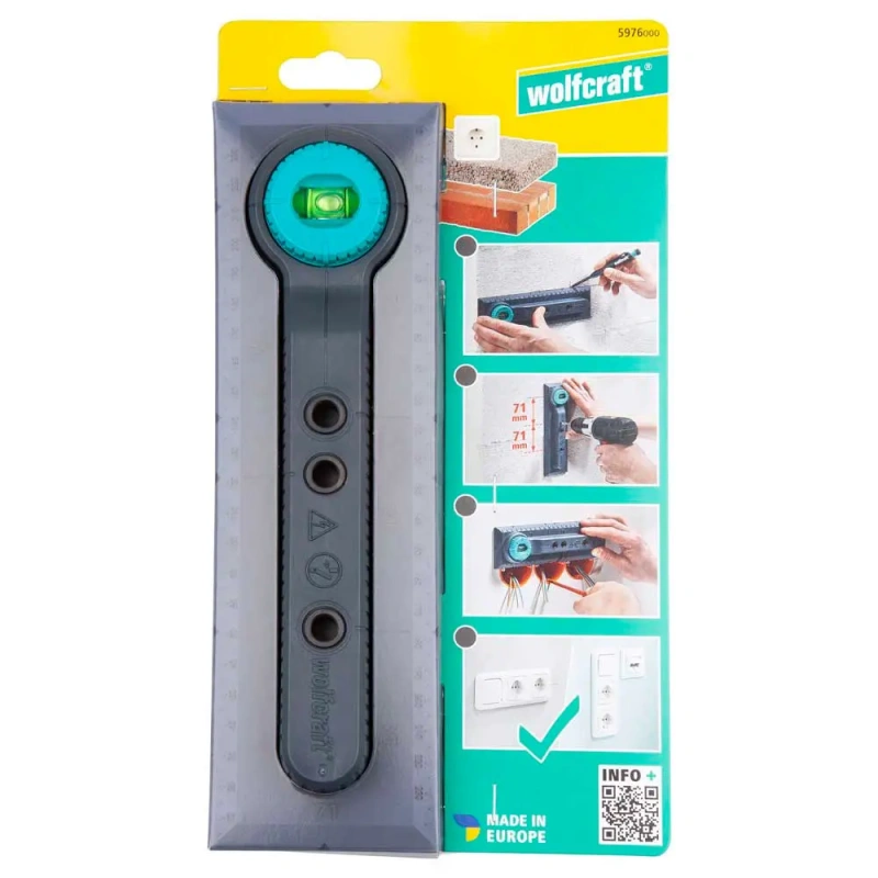 - 71 mm märgistused kõigil külgedel, et hõlpsalt kopeerida õigeid vahekaugusi kahe paigalduskasti vahel