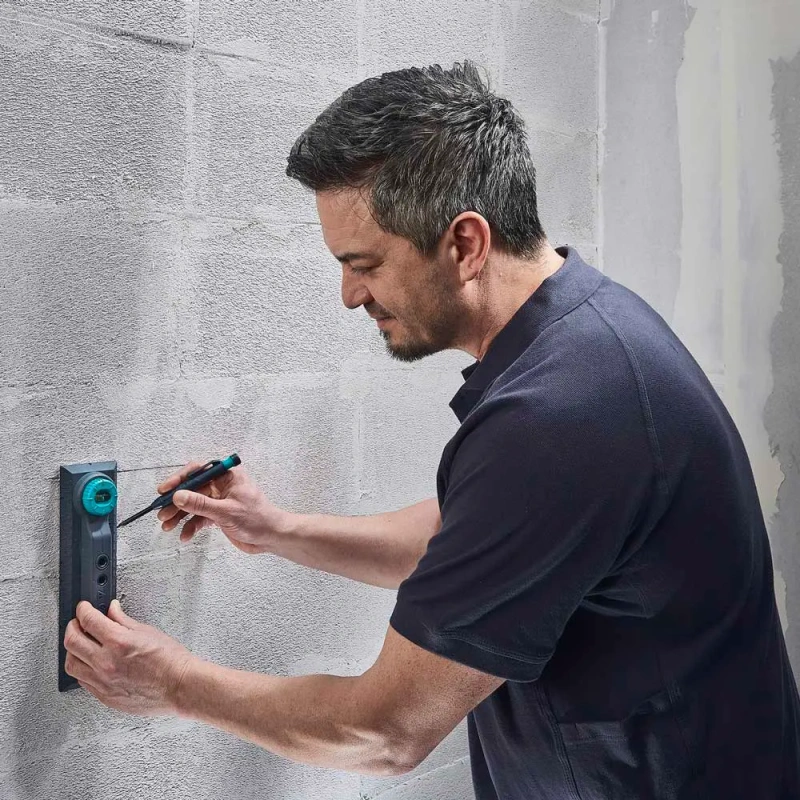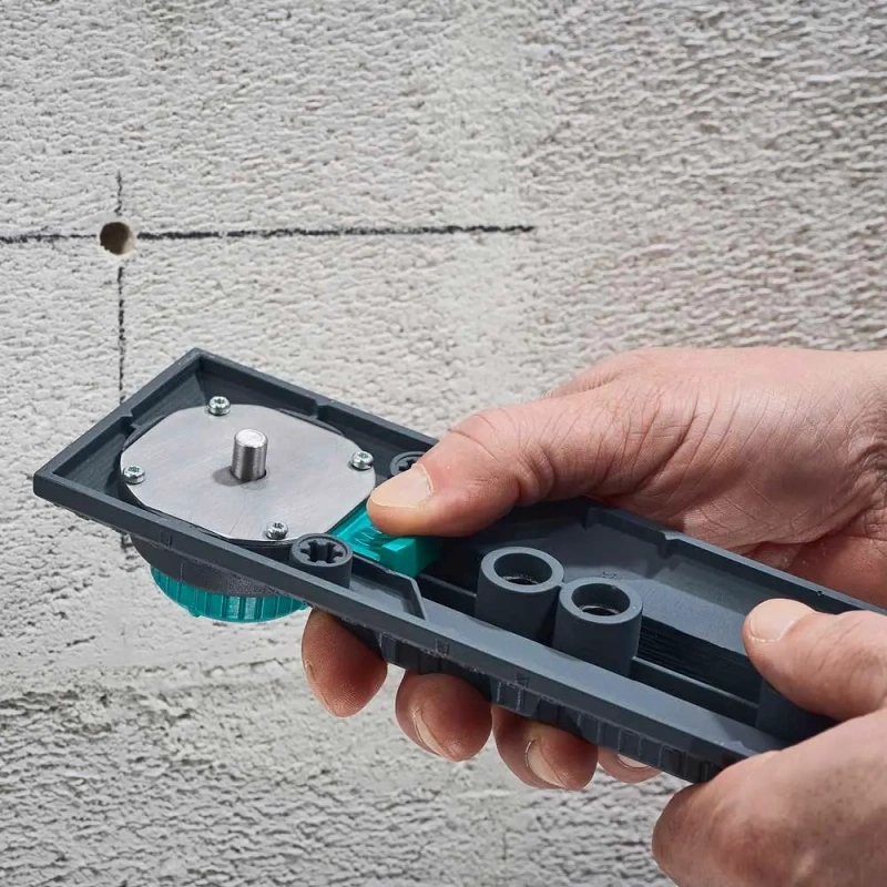 - Märkimise, joondamise ja puurimise mall kiireks ja veavabaks elektriliste paigalduskarpide ja nende sisestuste paigaldamiseks tellisseintesse ja kipsplaadiseintesse