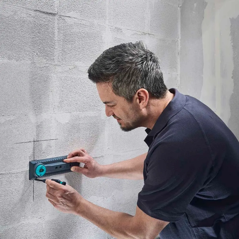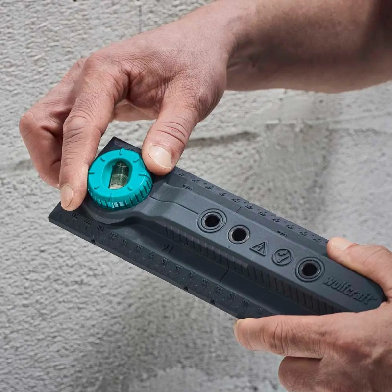 90° pööratav lood võimaldab malli usaldusväärselt joondada vertikaalselt ja horisontaalselt, et täpselt märkida puurimispositsioon. Hiljem aitab puurimisrakis "Electrics" paigalduskaste ja sisestusi täpselt joondada ja positsioneerida.