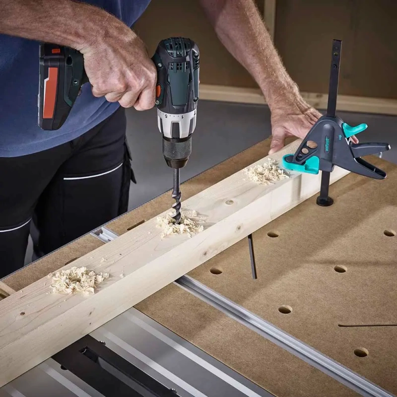 - 2 suurt ja 2 väikest klambrit töödetailide kindlaks kinnitamiseks laua profiilile; võimaldavad ka kokkuvoldituna vabaltseisvat hoiustamist