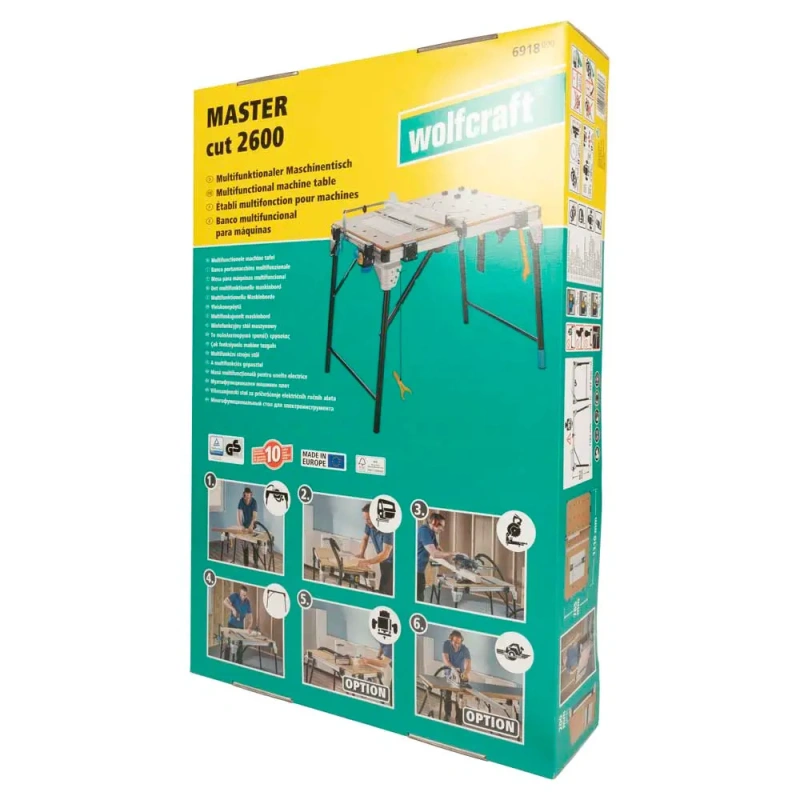 Mitmeotstarbeline masinalaud MASTER cut 2600 ühendab kuus funktsiooni ühes tootes. Seda saab kasutada ketassaelauana, tikksaelauana, tükeldussaelauana, töölauana ning – valikuliste tarvikutega – freeslauana ja juhtsiiniga ketassaelauana. See teeb MASTER cut 2600-st ideaalse vahendi kõigile sisetöödega tegelevatele spetsialistidele. Tänu eemaldatavale lõhestuskiilule (müügil eraldi) on see üks vähestest masinalaudadest, mida saab kasutada ka käsiketassaagidega, millel pole lõhestuskiilu. Masinaplaat on varustatud turvalukuga, mis fikseerib plaadi ja tööriista kindlalt. MASTER cut 2600 on ühilduv paljude kaubanduses saadaval olevate tööriistadega, olenemata tootjast. Turvalüliti asub laua küljel, et saaksite tööriistu kiiresti ja ohutult sisse ja välja lülitada. Kasutades seda ketassaelauana, võimaldab paralleelpiiraja juhitud lõikeid kuni 625 mm lõikelaiusega. Nurgapiirajaga on võimalik lõikeid teha kuni +/- 60°, sealhulgas korduvlõigete seeriad. Masinalaud suudab kanda isegi täispuidust plaate tänu oma kandevõimele kuni 120 kg. Ühe tootega olete usaldusväärselt ja tõhusalt valmis lugematuteks kodutöödeks.