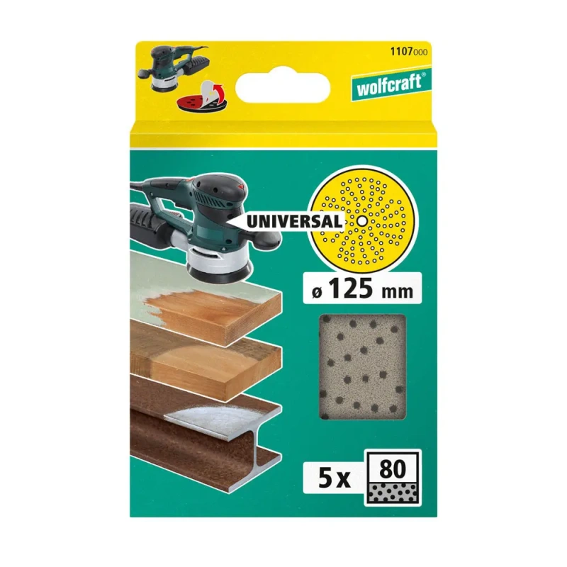 Mitme auguga lihvimiskettad läbimõõduga 125 mm on mitmekülgsed ja eriti sobilikud lakitud ja värvitud pindade lihvimiseks, kuid neid saab kasutada ka puidu, metalli, roostevaba terase ja plastiku puhul. Tänu universaalsele augumustrile sobivad kettad kõikidele standardsetele masinatele ja tagavad tõhusa tolmu eemaldamise. Easy-fix kiud võimaldab lihvpaberite kiiret kinnitamist. Kõrgekvaliteedilised, kuumtöödeldud korundi abrasiivosakesed tagavad kiire töö edenemise ja pika kasutusea. Stearaatkattega pind vähendab lihvimistolmu kleepumist ning tagab stabiilse materjali eemaldamise. Kettad on saadaval erineva karedusega – selles komplektis on kasutusel K80. Pakend sisaldab 5 lihvimisketast.