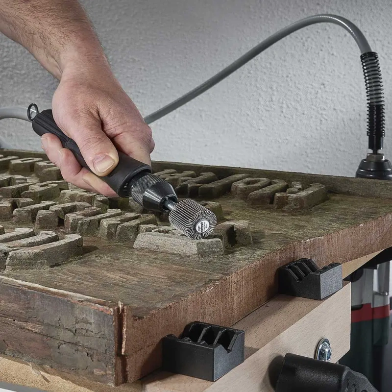 Painduv võll võimaldab täpset ja peet lihvimist raskesti ligipääsetavates kohtades, säilitades samal ajal liikumisvabaduse. Tänu kahele kuullaagrile töötab painduv võll väga sujuvalt, pakkudes täpset kontrolli lihvimistööde üle. 6 mm ümar vars muudab selle võlli ühilduvaks enamiku tavapäraste elektritrellidega, avades laia kasutusvõimaluste valiku erinevates isetegemise projektides. Võtmega padrun kinnitab kindlalt tööriistad, mille varre läbimõõt on 0,5 kuni 6 mm. See painduv võll on ideaalne valik täppistöödeks väikestel ja keerukatel tööesemetel mitmesugustes hobi- ja isetegemise rakendustes.