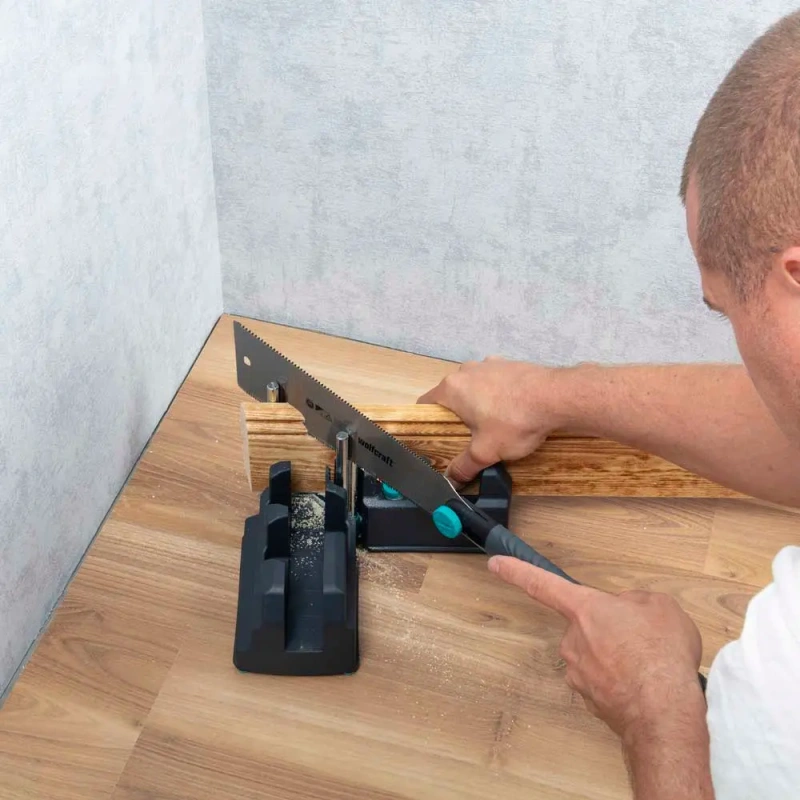 Reguleeritav eerungikast täpseks mõõtmiseks ja saagimiseks on nutikas 2-ühes toode, mis tagab teile ideaalselt sobivad põrandaliistud, kaotades vajaduse nurgamõõturi järele. Samuti säästate end tüütust ja vigadele kalduvast ülesandest õige nurga ülekandmisest saele. Mõõtke nurgad 85-180° mugavalt kahe liikuva saekasti abil. Teises etapis asetage põrandaliist ettenähtud juhikusse ja saagige käsisae abil. Automaatne nurga poolitaja, mis kasutab 2 juhikut, tagab täpsed nurgamõõdud. Kasutades reguleeritavat eerungikasti, saavutate täiuslikud põrandaliistude üleminekud isegi kõige viltumates nurkades, mida vanad hooned pakuvad.