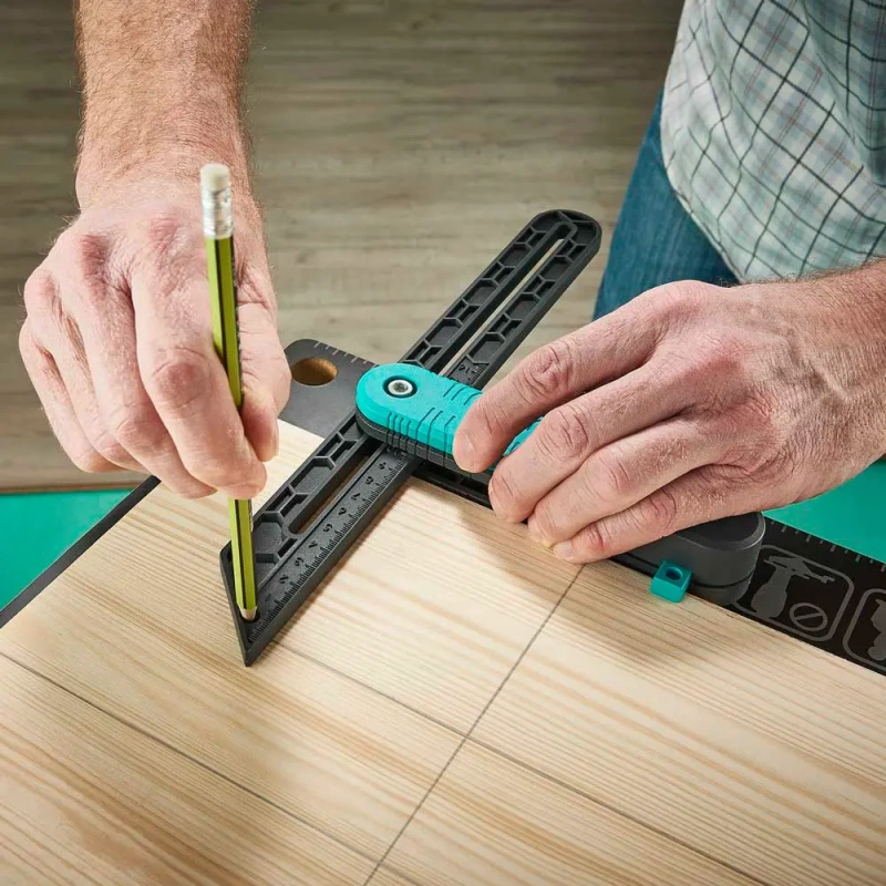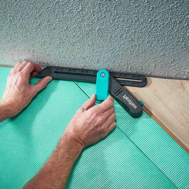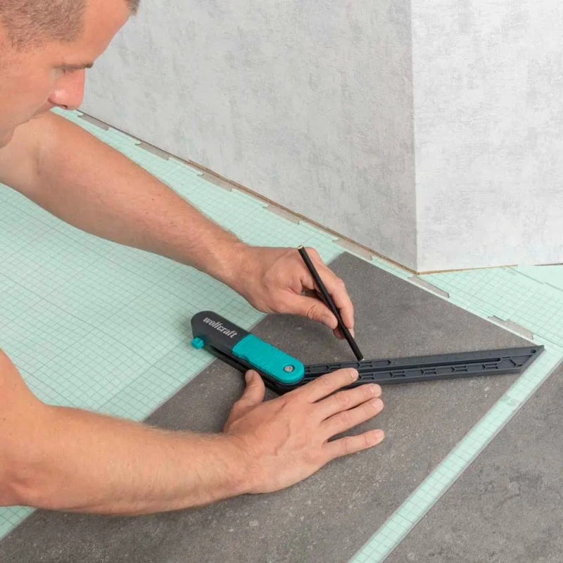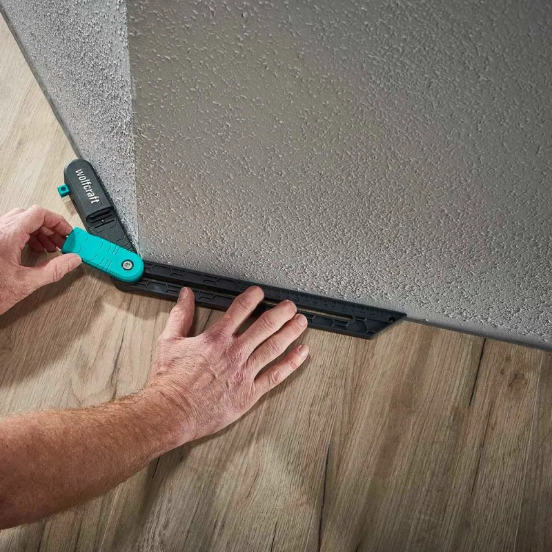 Reguleeritav kontuur ja märkenurgik on nutikas lahendus nurkade mugavaks mõõtmiseks koos hilisema ülekandmisega töödeldavale detailile - ideaalne põrandate paigaldamisel või mööbli ehitamisel. Esimene samm on lükata kaks plastmassist jalga seina nurka ja joondada need piki seinu. Nende kinnitamiseks kasutage lukustushooba. Hoob on konstrueeritud nii, et seda saab hõlpsasti kasutada vaid ühe käega mõlemalt poolt, isegi kitsastes tööpiirkondades. Esimene samm on lükata kaks plastmassist jalga nurka ja joondada need piki seinu. Nende kinnitamiseks kasutage lukustushooba. Hoob on konstrueeritud nii, et seda saab hõlpsasti kasutada vaid ühe käega mõlemalt poolt, isegi kitsastes tööpiirkondades.