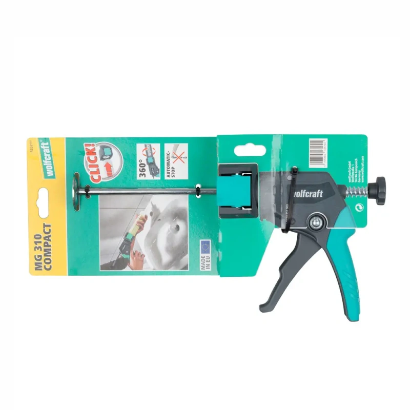 Ultra-kompaktne ja kohe kasutusvalmis – just seda silmas pidades töötati välja MG 310 COMPACT, mis sobib ideaalselt silikooni, akrüüli ja liimide pealekandmiseks tänu 160 kg surverõhule. Selle ruumisäästlik disain võimaldab selle paigutada väikseimasse sahtlisse või tööriistakasti. Kiire vahetushoidik võimaldab kasseti kiiret kinnitamist ühe klikiga. Kassett jääb seejuures pööratavaks, mis võimaldab paindlikult kohandada töönurka tihendamisel või liimimisel. Automaatne tilgalukustusfunktsioon hoiab ära soovimatu materjali väljumise tööriista maha asetamisel – iga kord puhtad tulemused.