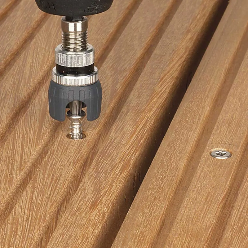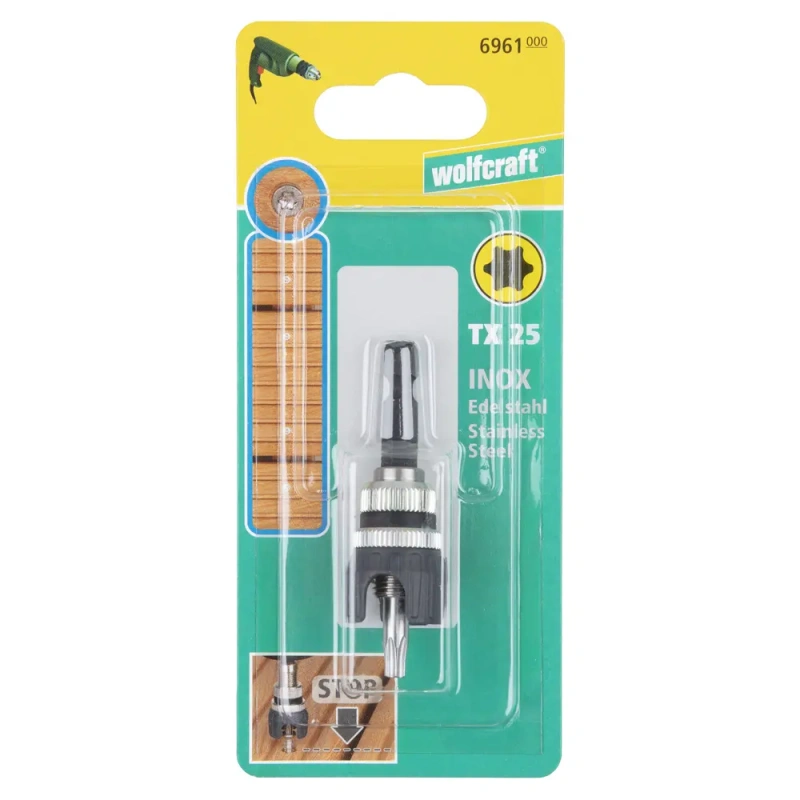 See kruvikinnitus ¼-tollise kuuskantpeaga ja sügavuspiirajaga võimaldab teil terrassi ehitamisel kruvisid alati täiuslikult süvistada. Kruvi õigele sügavusele sisestamisega tagate ühtlase välimuse ja väldite kruvide liiga sügavat paigaldamist süvistatud aukudesse. Selleks seadistage sügavuspiirik vajalikule sisestussügavusele vaid korra. Rõngasmagnet hoiab kruvi kindlalt otsakul. Plastikkate on varustatud aknaga, mis tagab takistusteta vaate otsakule ja kruvile, võimaldades teil töö edenemist alati jälgida. Komplektis on roostevabast terasest Torx®-otsak.