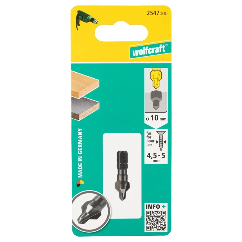 1 x Süvisti, d 4 - 10 mm, vars kuuskant, süvistusnurk 45 kraadi, 3 lõikenurka, kruvidele 4,5 - 5 mm.