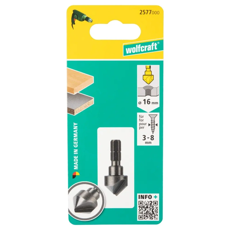1 x Süvistaja d 16 mm, süvise nurk 45 kraadi, vars kuuskant, 1 lõikenurk.