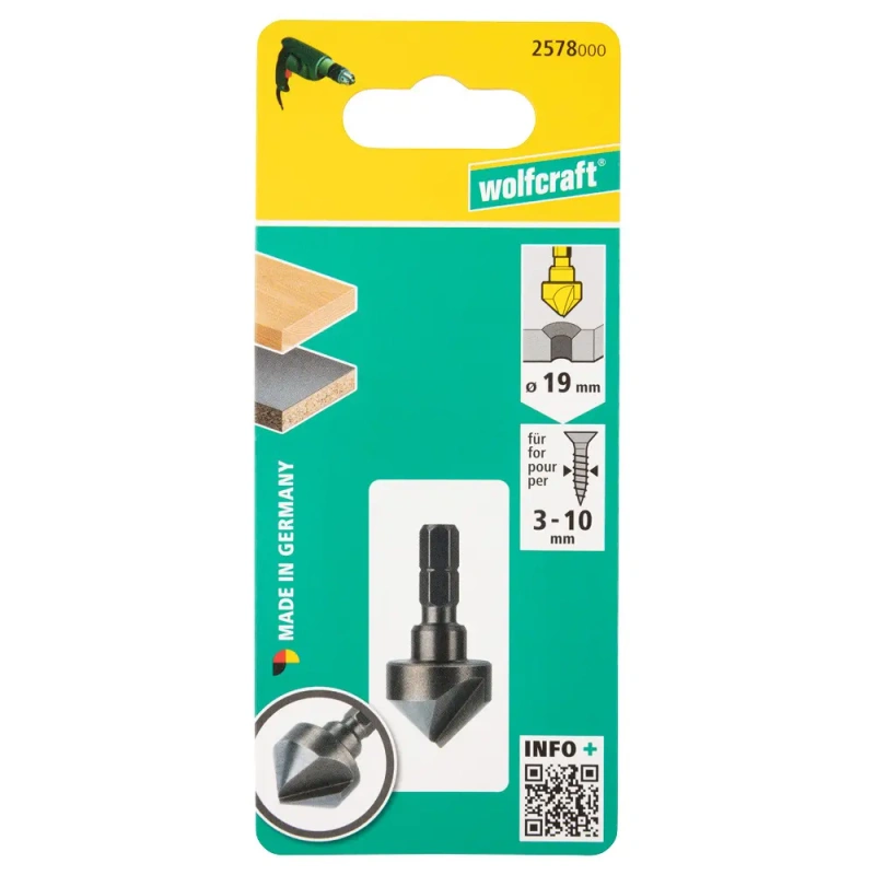 1 x Süvistaja d 19 mm, süvise nurk 45 kraadi, vars kuuskant, 1 lõikenurk.