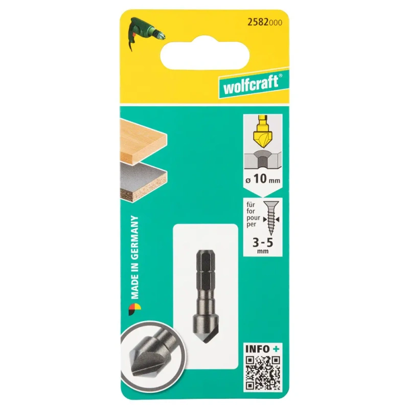 1 x Süvistaja d 10 mm, süvise nurk 45 kraadi, vars kuuskant, 1 lõikenurk.
