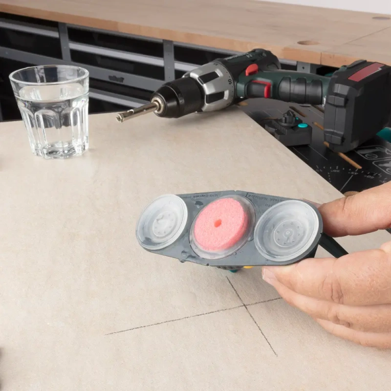 - Sisaldab juhtsiini integreeritud käsnaga teemantkatte korrektseks veejahutuseks ja täpsete aukude puurimiseks