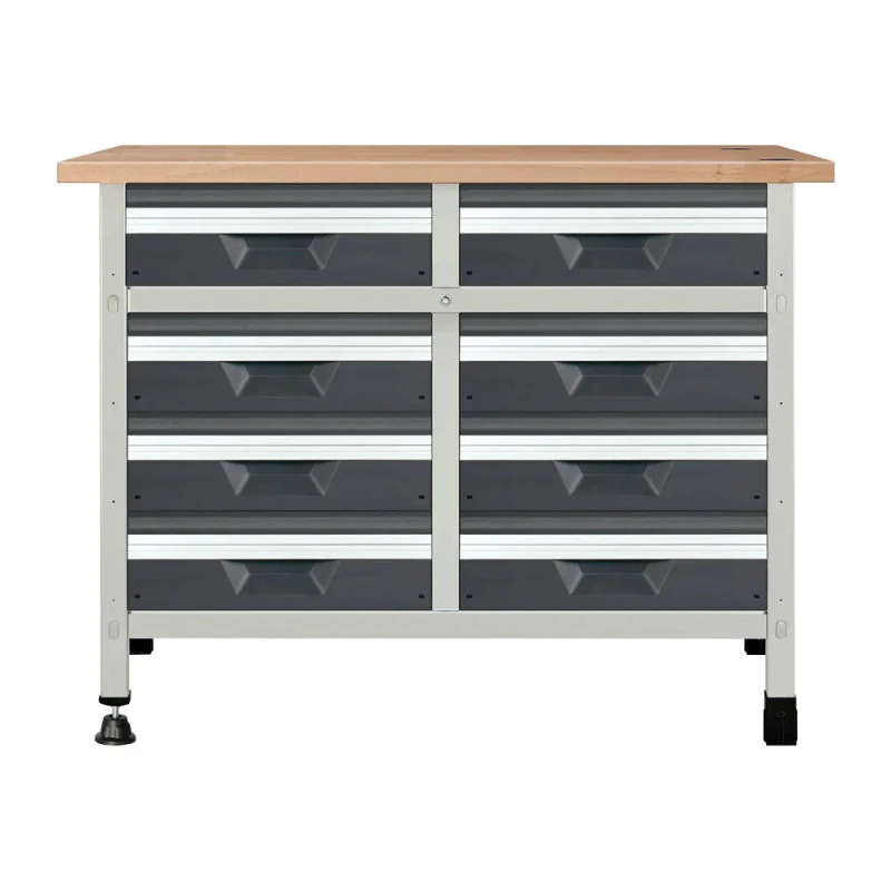 - Kiirpaigaldussüsteem: tööpingi paneelid on eelnevalt puuritud, mutrid eelmonteeritud ja tasapind paigaldatud.