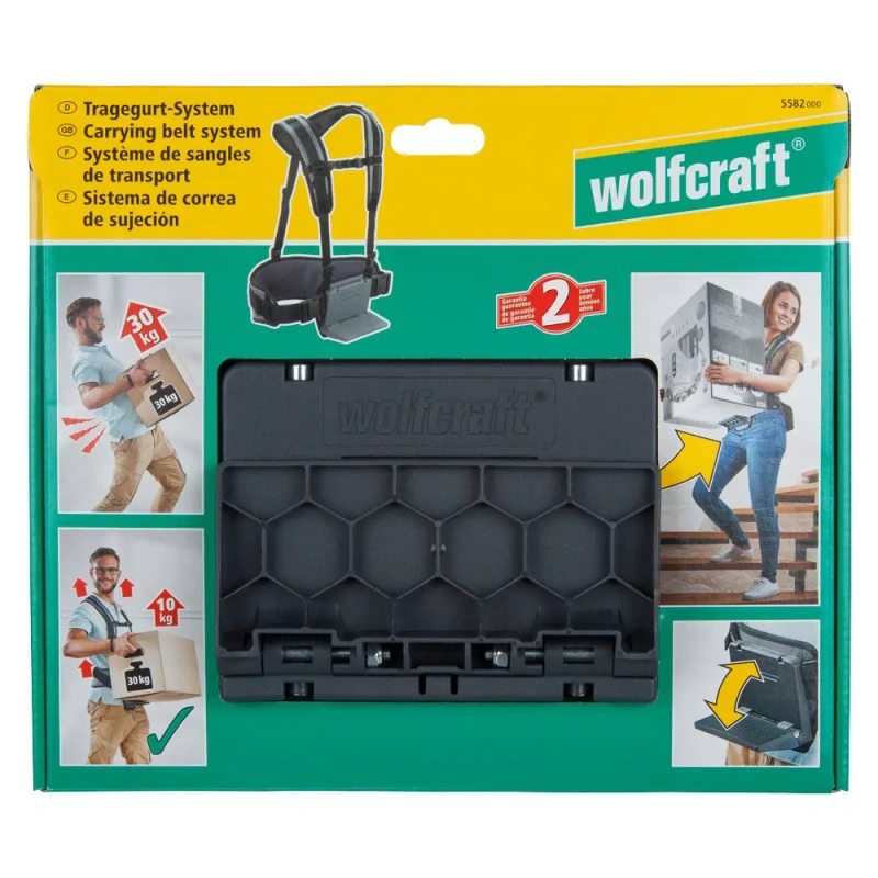 See kanderihmade süsteem toob kvaliteetsete matkakottide ja koolikottide põhimõtte teie koju. Polsterdatud õla- ja vöörihmad koos väljatõmmatava kandmislauaga võimaldavad kanda raskeid koormaid, nagu kolimiskastid, pesukorvid, joogikastid või ostukorvid, ilma väsimuse või seljavaluta. Rihmasüsteemi on võimalik kiiresti selga panna ja seda saab kohandada vastavalt keha suurusele. Tõhus koormuse jaotus tähendab, et käsivartes on vaja 75% vähem pingutust, mis võimaldab hõlpsamini avada uksi ilma kasti maha panemata. Täielik jalgade liikuvus on tagatud trepist üles või alla liikumisel.