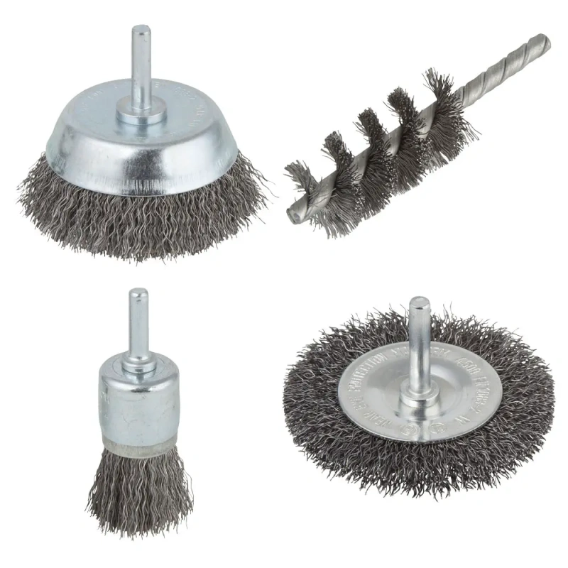 4-osaline traatharjade komplekt trellile puhastamiseks ja rooste eemaldamiseks. Pindade ettevalmistus jootmis- ja keevitustöödeks. Sobib nii metallile kui kivile.