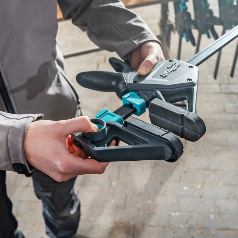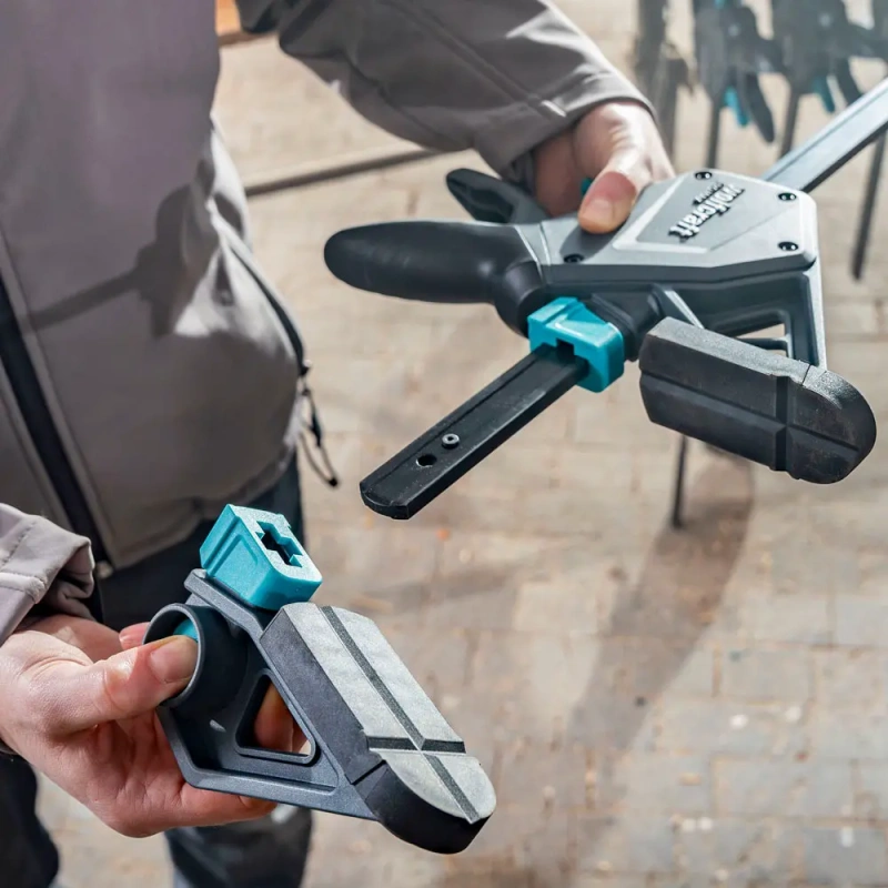 - Spetsiaalne hoovamehhanism võimaldab kinnitussurvet ohutult leevendada ja klambrit ühe käega lihtsalt reguleerida, säilitades täieliku kontrolli.