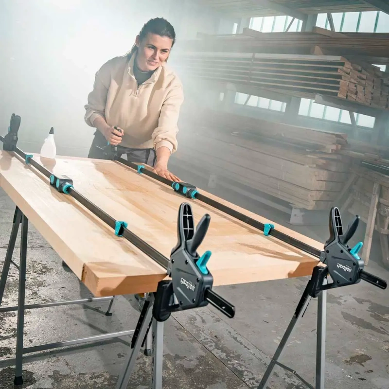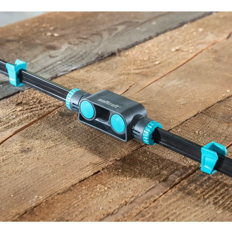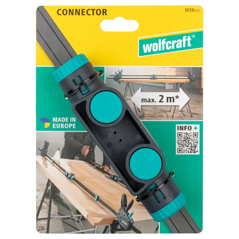 - Ühekäe kiirpitstangide ühendus kahe wolfcraft ühekäe kiirpitstangi kombineerimiseks – ideaalne kuni 200 cm laiuste haaramisulatuste saavutamiseks.