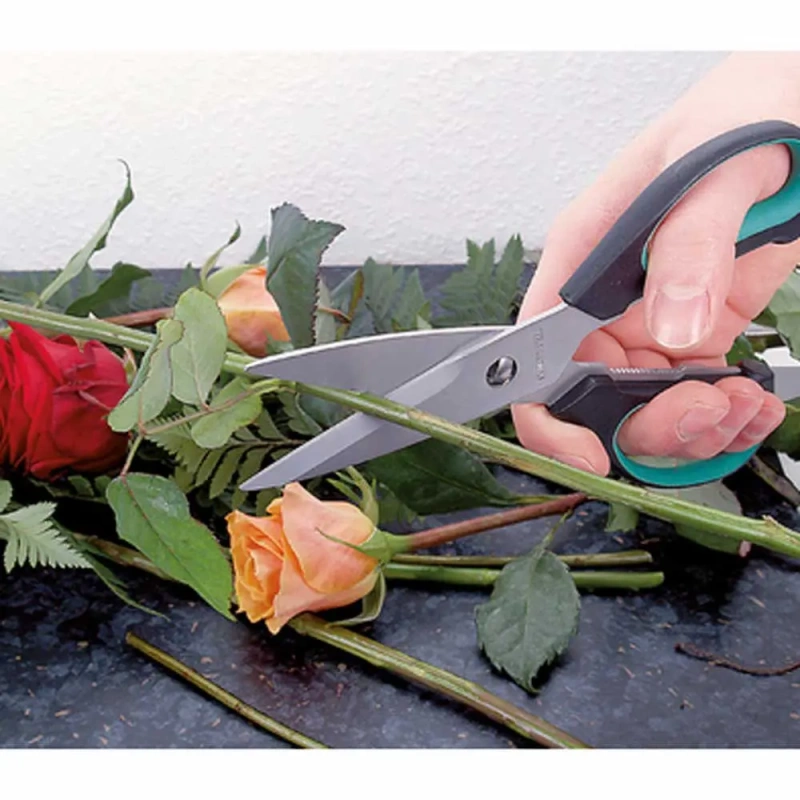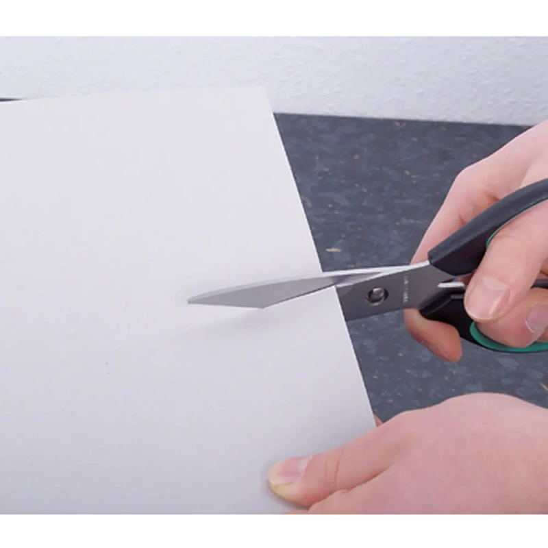 Ergonoomilise käepidemega roostevabast terasest käärid lõikavad suurepäraselt paberit, riiet, ja muid õhukesi materjale. Liitekoht on kindel ja vastupidav.