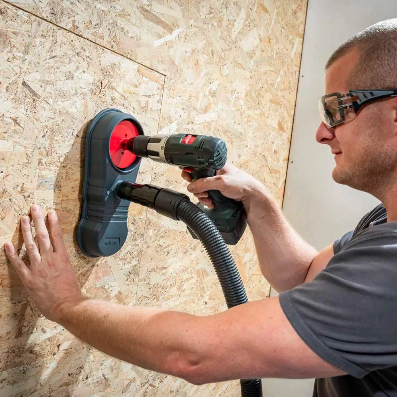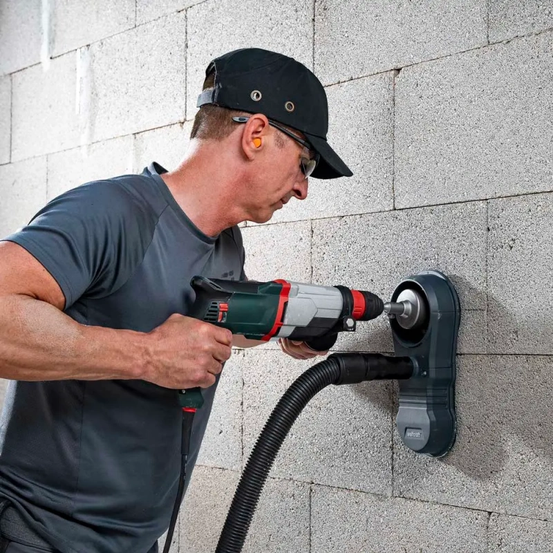 Tolmu eemaldamise süsteemis on 2 eemaldamisüksust, mis koos vähemalt 1,000 W tööstusliku tolmuimejaga tekitab alarõhu ja tagab kindla kinnituse kipsplaadi, betooni, telliskiviseinte ja muude siledate pindade külge. Paigaldatud eemaldusseade tõmbab koheselt ära tekkiva puuritolmu ja väikesed laastud, ilma et osakesed seina puudutaksid.