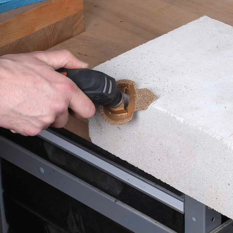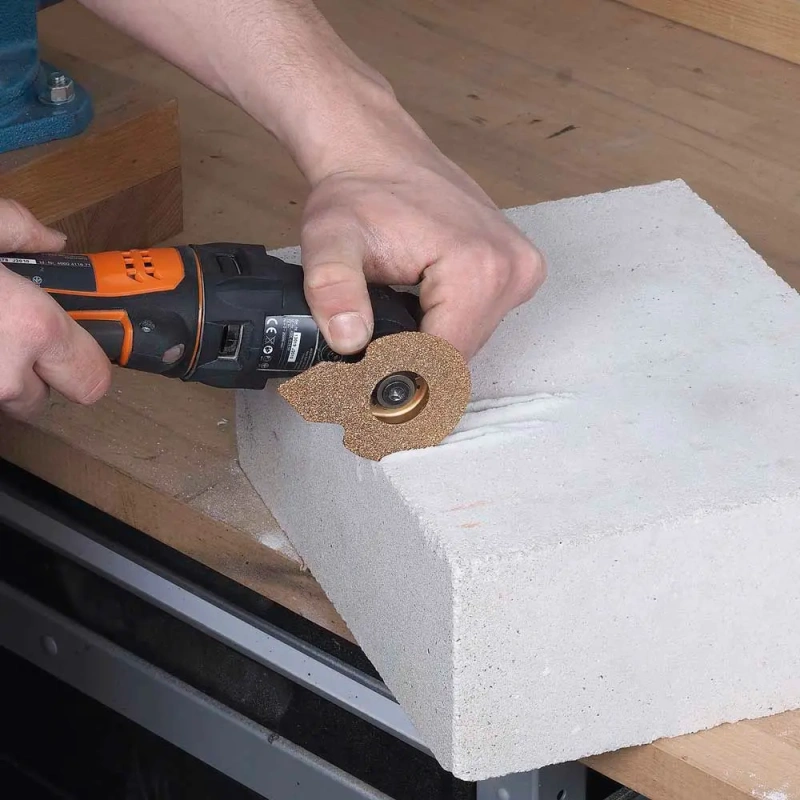 2 ühes. Eriti sobilik plaatimistöödel: vuukide puhastamiseks, kitsastes nurkades lihvimiseks, servade lõikamiseks jne. Ka gaasbetooni ja katusekivide jaoks.