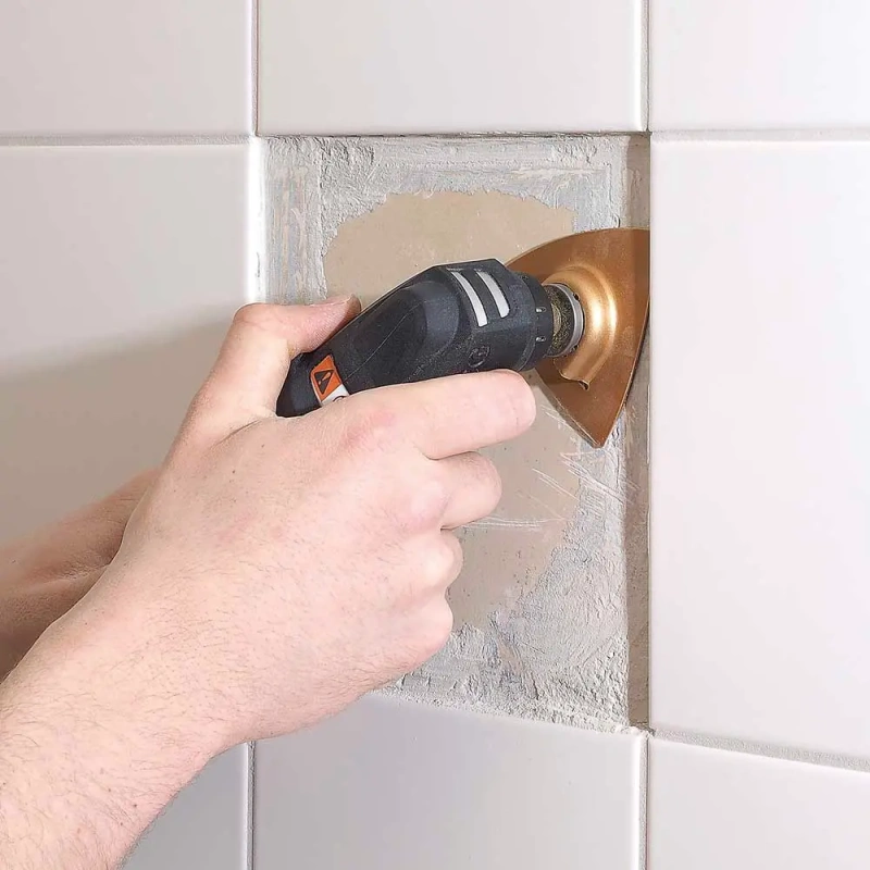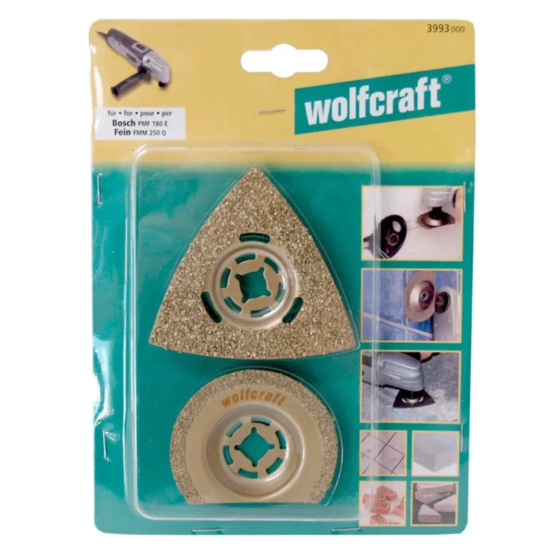 Universaaltööriista tarvikute komplekti kuuluvad kõvasulampuruga kolmnurkne lihvplaat ja radiaallõiketera kivi ja keraamiliste plaatide lõikamiseks. Sobib hästi nii ehitus-, rekonstrueerimis- kui remonditöödele.