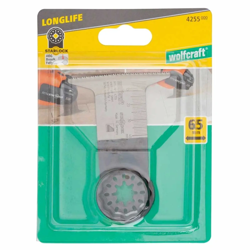 HCS pushcut saetera vibratsioonisaagidele, millel on Starlock kinnitus, lõikesügavusega 40 mm ja lõikelaiusega 65 mm, on ideaalne pikkade, sirgete lõigete tegemiseks. Sirgete hammastega tera võimaldab hõlpsalt lõigata puitu, plasti ja kipsplaati. Kumer lõikeserv muudab süvislõigete tegemise vaevatuks ning loob puhtad lõikeservad ja korrastatud välimusega lõike, samas kui lai, kooniline kuju tagab optimaalse lõikekiiruse ja laastude eemaldamise.